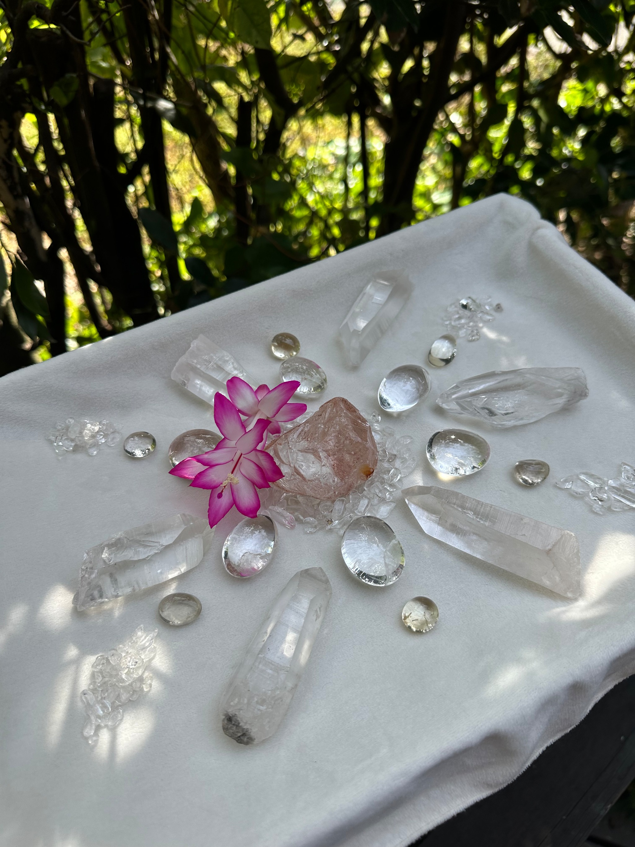 このピンクのクリアクオーツは、レムリアンシードとフィットする感じがしたので、このように並べてみましたよ。☺️
